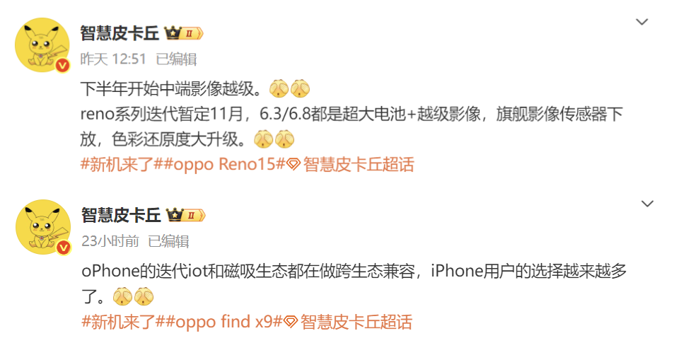 而生态方面也很清晰,OPPO Reno15系列有望和接下来的OPPO Find X9系列一样,引入OPPO的磁吸生态系统,实现跨品牌配件兼容特性。