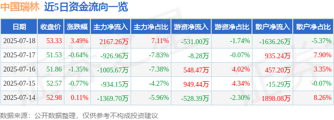 本站消息中期国际,截至2025年7月18日收盘,中国瑞林(603257)报收于53.33元,上涨3.49%,换手率23.55%,成交量5.75万手,成交额3.05亿元。