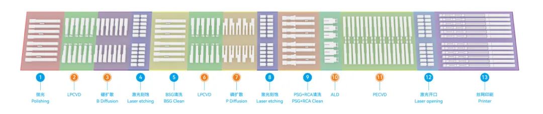 基于TOPCon量产整线解决方案领域积累的成熟经验,微导纳米成功开发出新一代XBC整线解决方案。该方案整合了批量式ALD系统、管式PECVD系统、管式LPCVD系统及管式高温低压系统等核心设备,针对XBC电池的特殊工艺需求,提供定制化的薄膜沉积技术解决方案,有力推动XBC电池技术从实验室走向规模化量产。