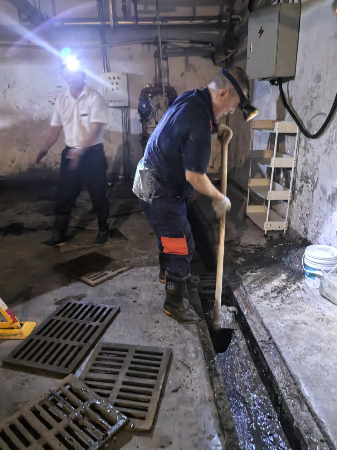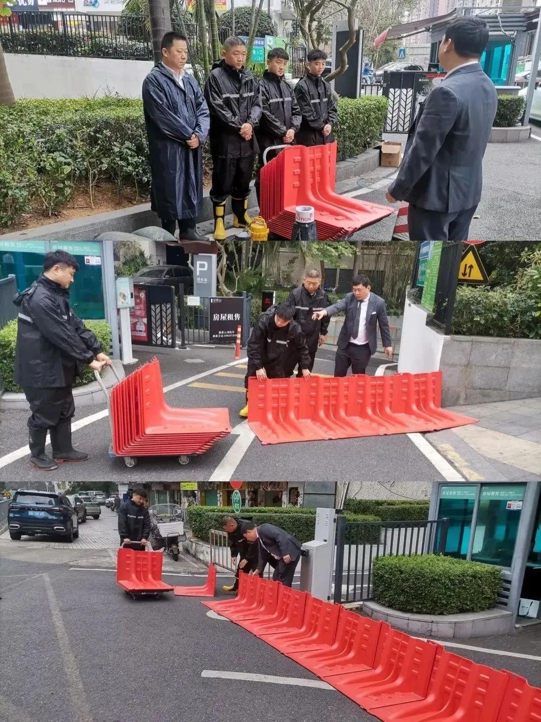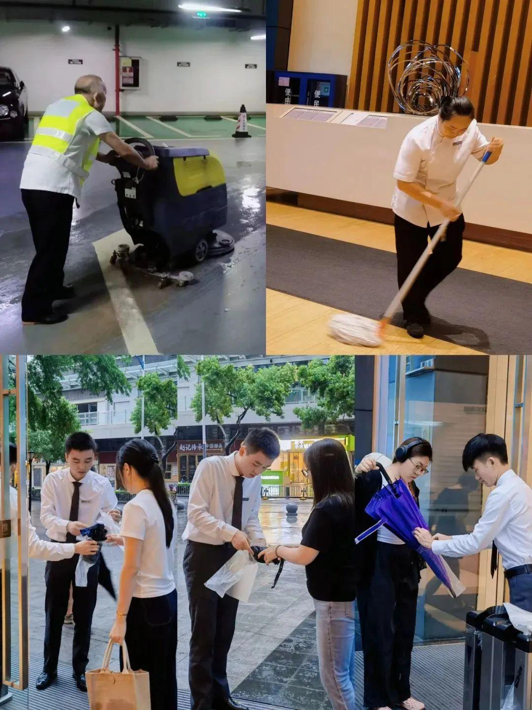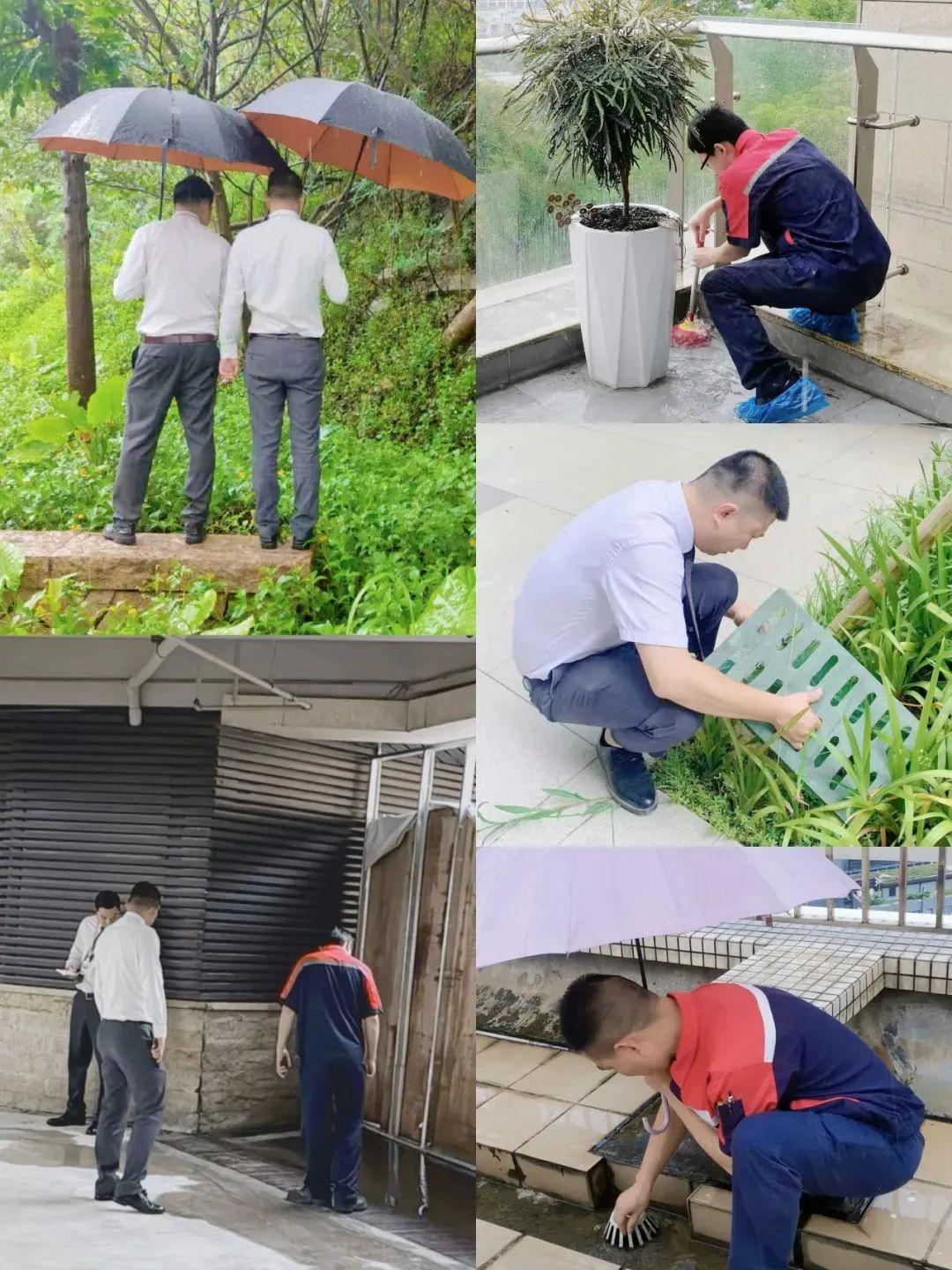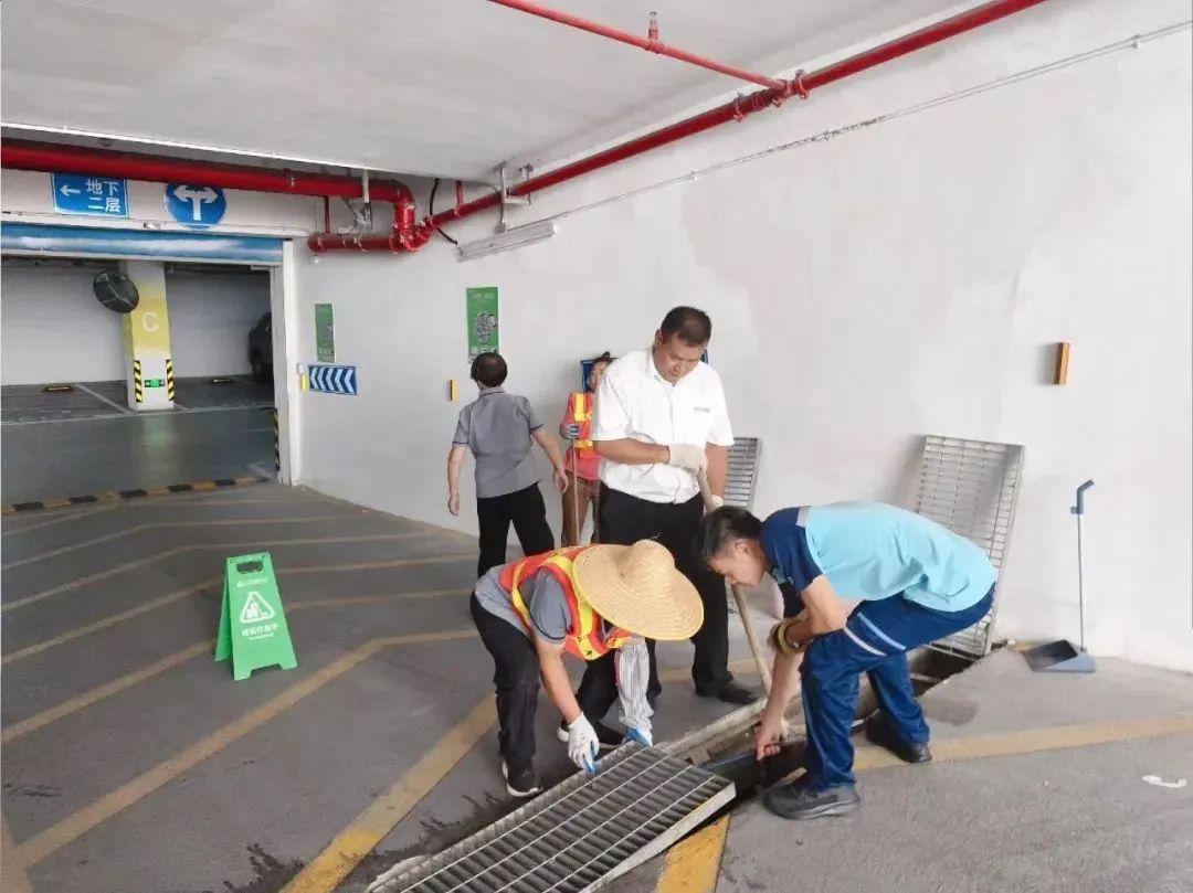 公司从多方面强化防御措施:物业人员集中清理雨水井、排水沟,确保排水畅通;全面排查并加固楼顶广告牌、阳台物品,消除高空隐患;对易倒伏树木加装支撑架和钢丝绳,提升抗风能力;在地下空间加设沙袋、挡水板,调试抽水泵,保障车库防汛安全。同时,24小时抢险队伍集结待命,雨具、通讯设备、防汛物资一应俱全,确保随时应对突发情况。