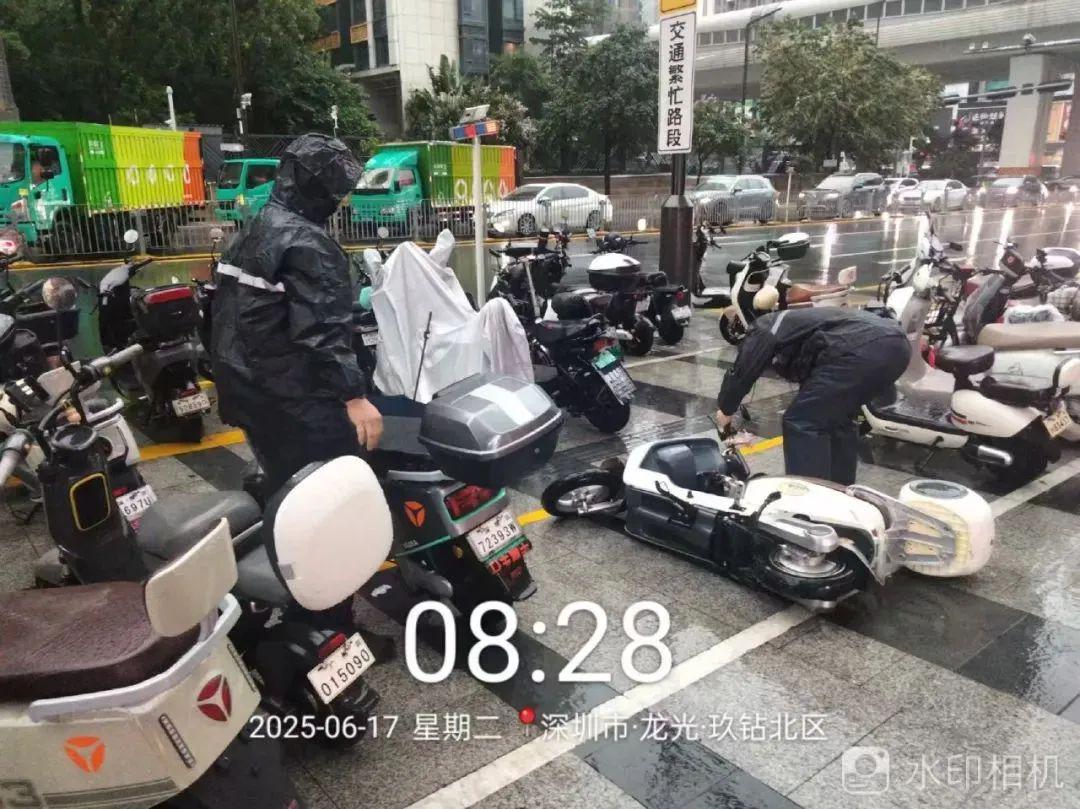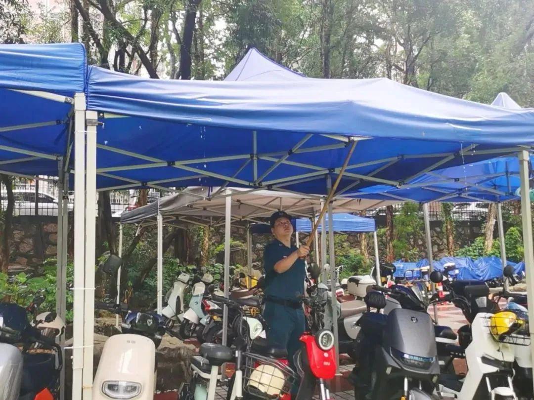 暴雨来临前,中海物业深圳公司已迅速启动应急预案,在深圳50多个住宅园区开展防汛保障工作。第一时间通过业主群、公告栏等多渠道发布安全提示,并在关键区域设置醒目标识提醒业主出行安全。管家与清洁团队赶赴楼顶,逐个排查排水口并清理排水口杂物,确保排水系统畅通无阻,严防积水倒灌。安保人员细致检查地库排水泵、集水井运行状态,调试设备并复核布防防汛挡板、沙袋等物资,筑牢地下防线。针对业主电动自行车防护,物业紧急搭建防雨棚,并安排专人定时巡查,遇积水立即清理,全力守护业主财产安全。