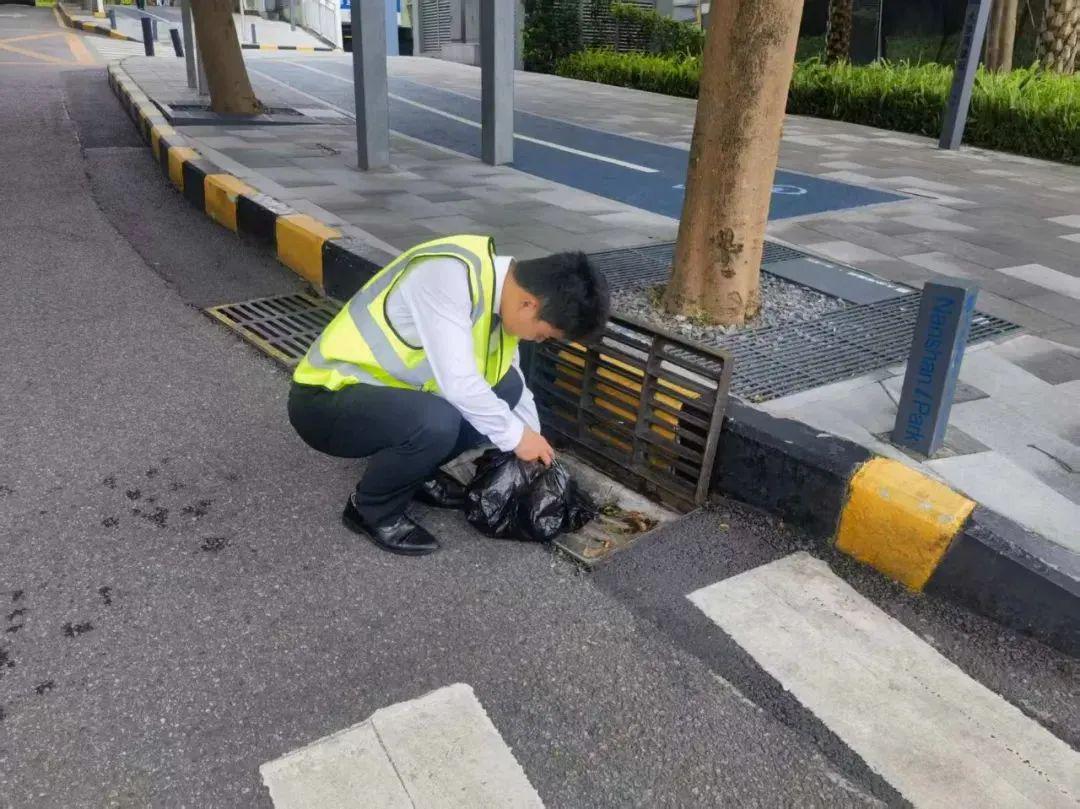接到暴雨预警后,龙城服务集团深圳南山智园项目立即启动“全链条防汛作战模式”,密切关注台风发展动态和雨情水情汛情变化,以“万无一失”的标准、“一失万无”的警觉,全速推进防御措施落地。在暴雨来临前,全面清理雨水箅子、疏通排水管道,保障排水系统畅通。同时针对地下停车场、天面等易涝重点区域开展专项检查。项目全体人员以“宁可十防九空,不可失防万一”的责任感,坚决打赢这场防汛硬仗,全力守护园区安全底线!