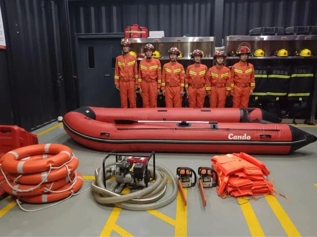 金地智慧服务应急处置分队闻“汛”而动,于6月16日晚间迅速进入防汛战备状态,提前对金地花园、金地工业区进行台风暴雨隐患排查。分队全员绷紧安全弦,所有抢险装备已精准就位:1艘橡皮艇随时待命,15套救生衣、4个救生圈筑牢生命防线,8套雨衣雨鞋保障队员行动,15顶照明头盔及2盏强光手提灯穿透雨幕,5台链锯、3条救援绳索、2台抽水泵及10盘220米水带(65型)严阵以待,更有水罐消防车与电动巡逻车机动支援。6名骨干彻夜值守,10人应急力量随时可出动。金地应急分队以专业装备为盾,以无畏担当为矛,在风雨中为居民筑起一道守护家园的坚实堤坝,默默践行着守护一方平安的温暖承诺。