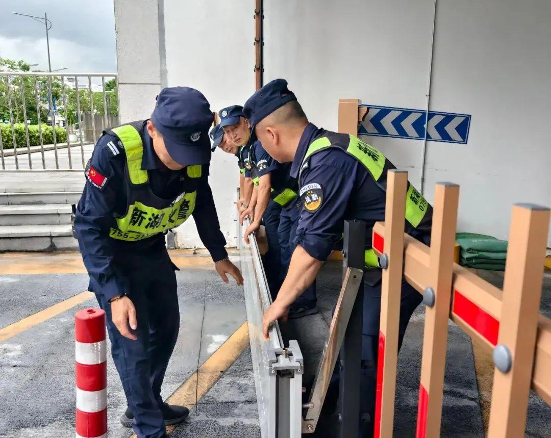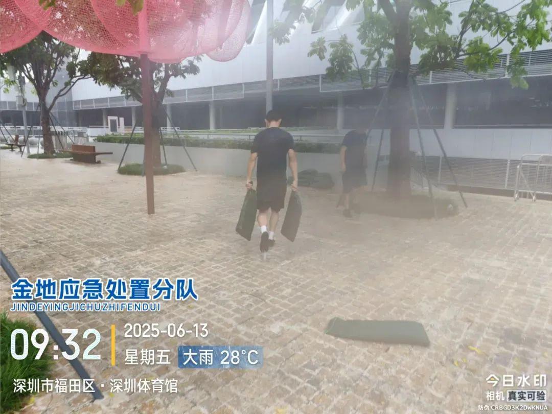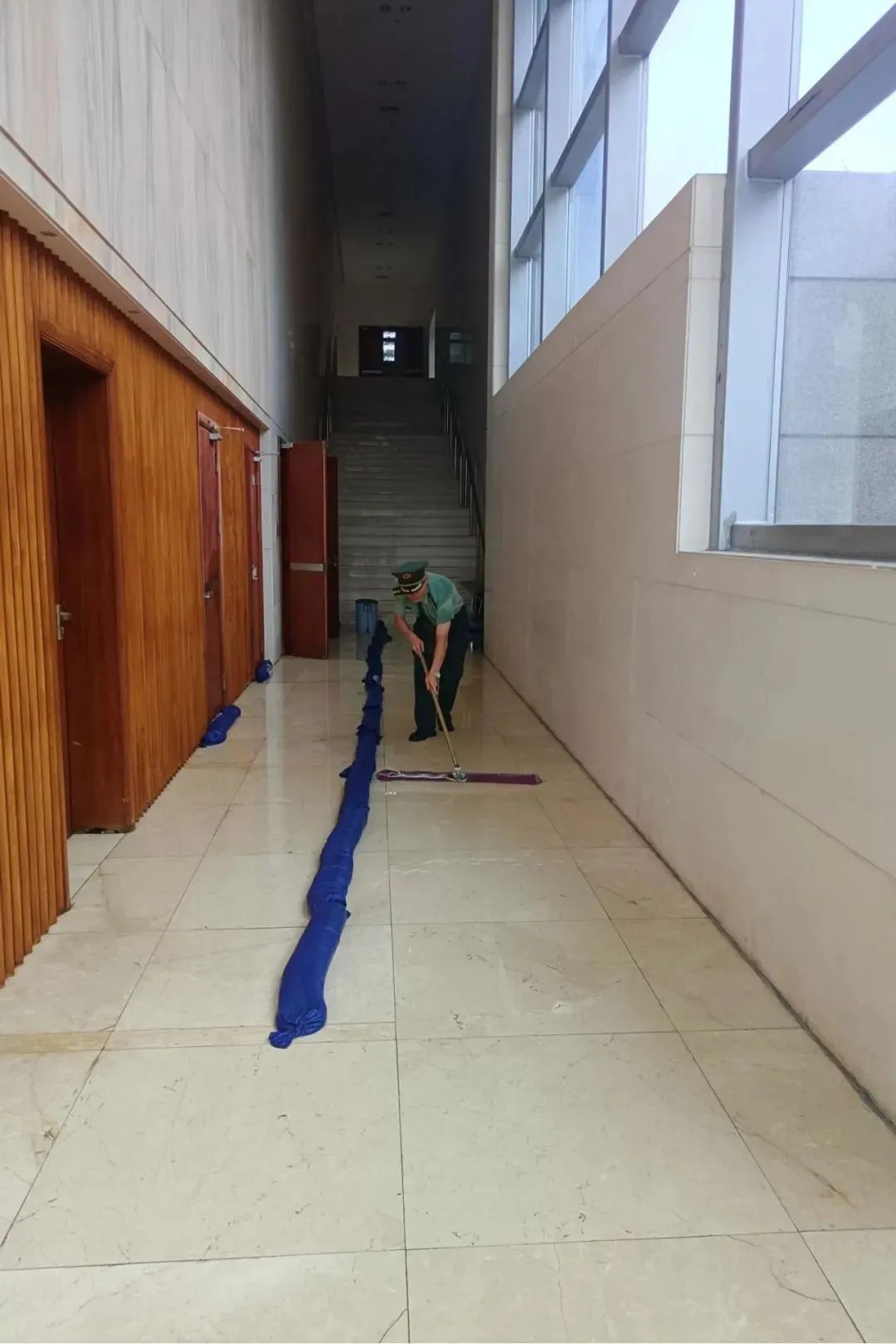 6月16日,深圳市遭遇强降雨袭击,面对严峻的防汛形势,行政学院服务中心团队闻“汛”而动,迅速启动应急预案,全力保障客户人身安全与设施正常运行。在暴雨天气下,招商积余国家工商总局行政学院项目秩序队员冒雨巡查时,发现2号楼塘朗山大讲堂一层出现积水倒灌情况。队员立即上报,班长及其他队员迅速赶到现场,紧急调用备用沙袋筑起临时防线,并组织人员清扫积水,保障了教室及设备房的安全,用实际行动诠释了责任与担当。
