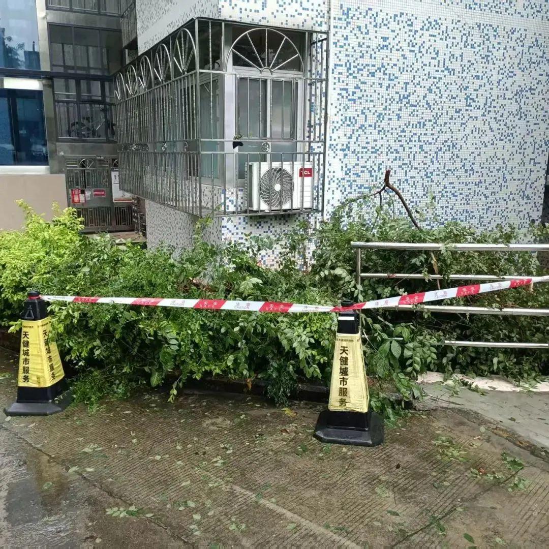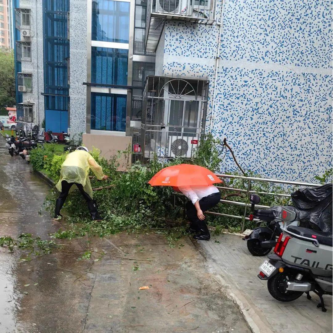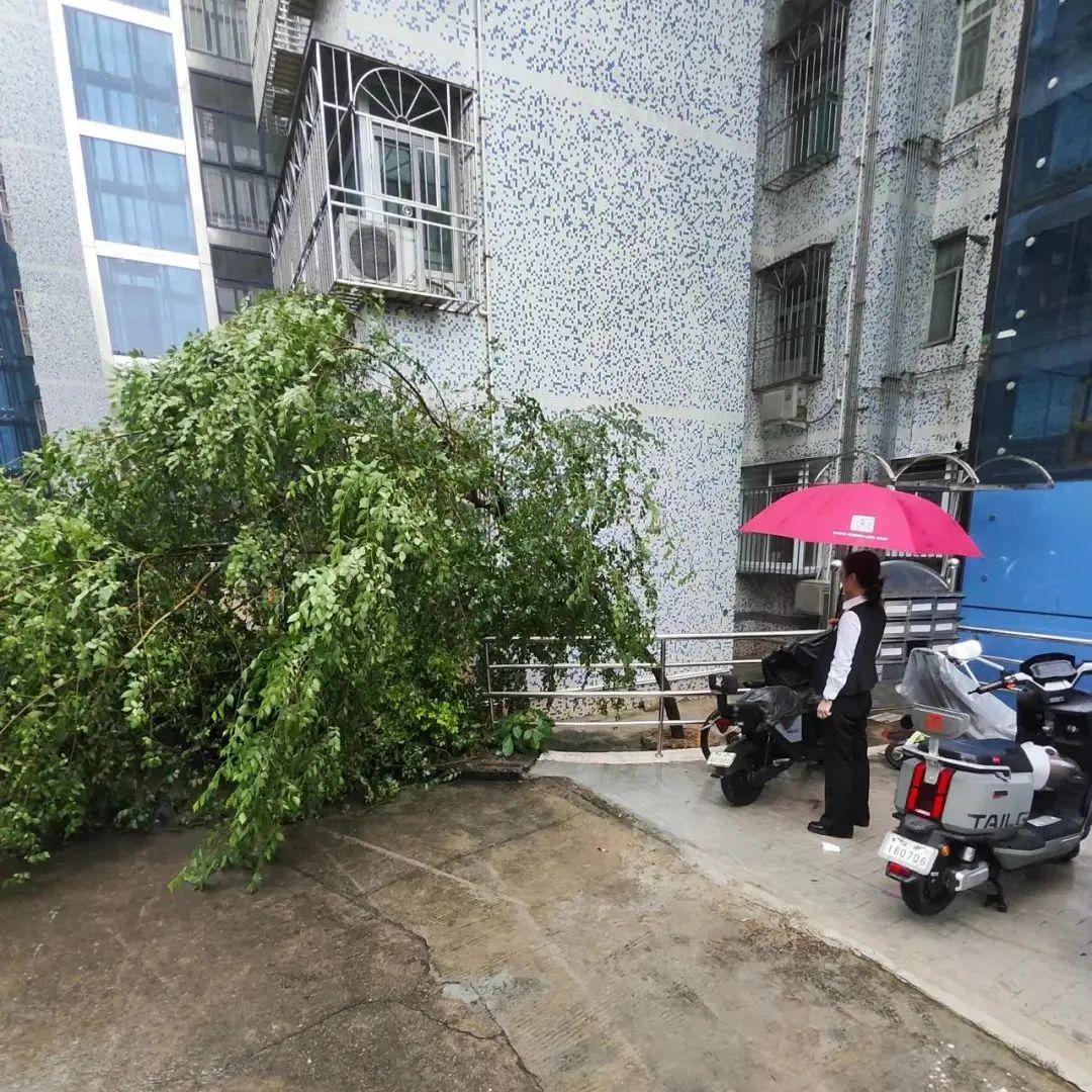 当天,市政大院项目经理增派安保人员对辖区内高大乔木进行隐患排查处理。此次应急处置中,市政大院物业工作人员全程规范操作,既保障了小区居民生命财产安全,又将暴雨影响降至最低,赢得业主广泛赞誉。