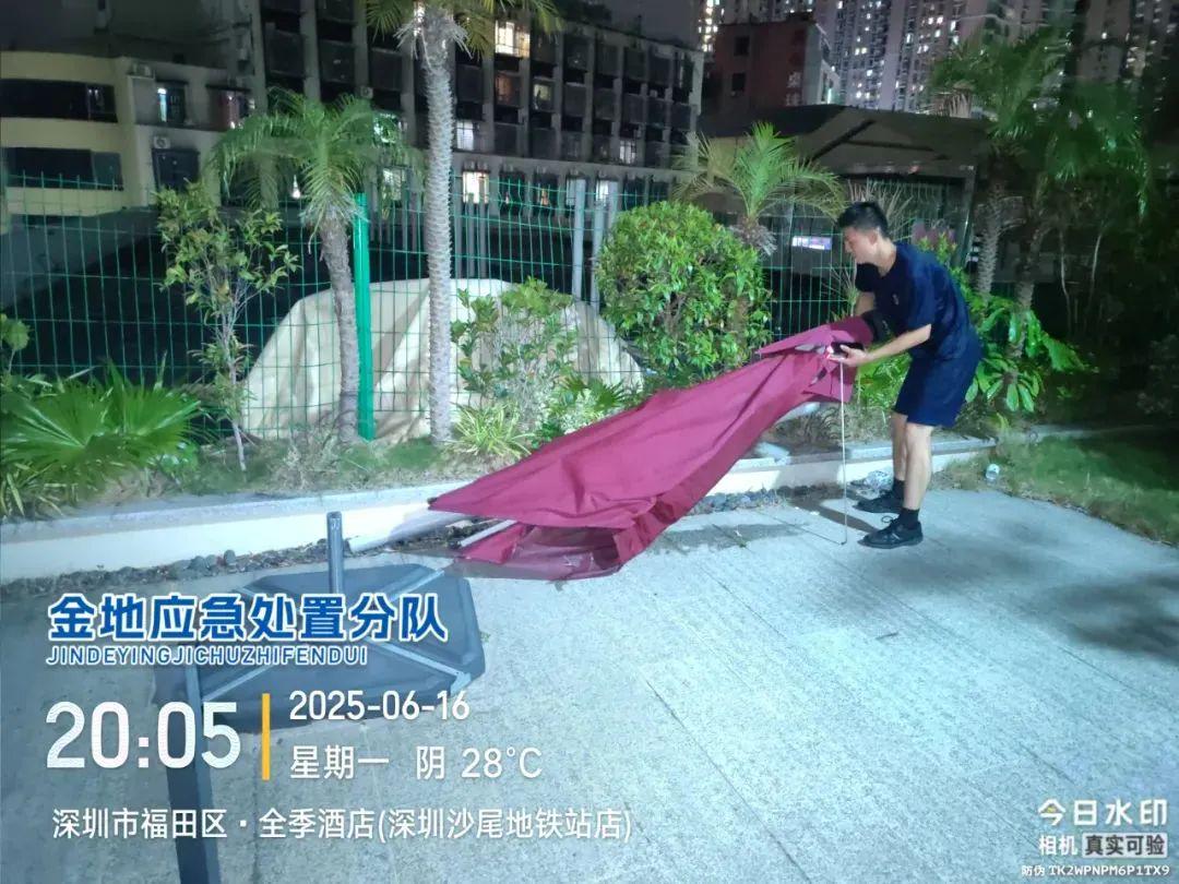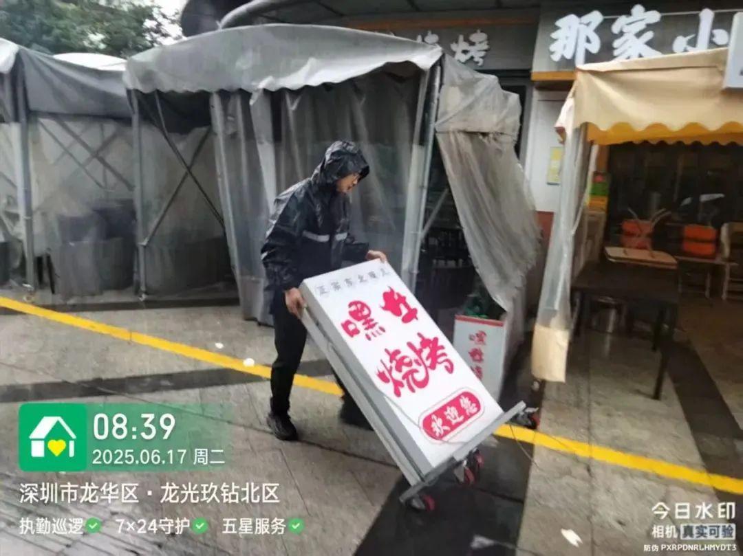 6月16日晚,深圳遭遇强降雨天气,龙光智慧服务迅速启动防汛应急预案,全力保障在管项目安全。在暴雨来临前,各项目已通过常态化防汛演练提升团队应急能力,确保物资储备充足、责任分工明确。暴雨期间,物业人员彻夜值守,实时监控积水情况,及时疏通排水管道,并对车库、电梯井、配电房等重点区域进行隐患排查,确保设施设备正常运行,防止次生灾害发生。同时,管家团队通过线上平台向业主发送安全提示,以及物业可提供紧急援助的暖心通知。龙光智慧服务以专业、高效的应对措施,展现了物业人的责任与担当,用实际行动诠释了“以客户为中心”的服务理念,为社区筑起一道温暖而坚实的安全屏障。